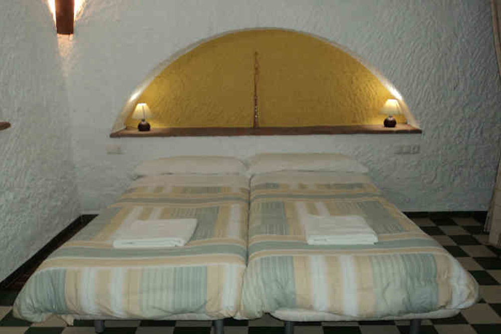 La cueva El Pozo de 2 dormitorios, se encuentra ubicada frente al jardín principal. Tiene una terraza con una mesa y 2 sillas de jardín. Dispone de cocina completa con microondas, frigorífico, batidora, tostadora, exprimidor, menaje completo para cocinar y servir. El salón-comedor dispone de sofá, televisión, mesa de comedor y sillas. Tiene un dormitorio con cama de matrimonio y otro con 2 camas individuales, ropa de cama, armario, cómoda y mantas. Dispone de baño completo, con juego de toallas, secador de pelo, gel, champú y jabón de manos.